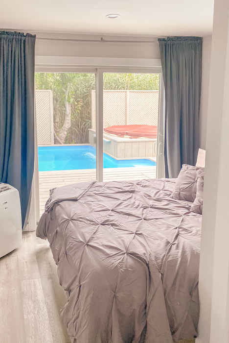Outside, relax by the sunny pool or unwind in the hot tub, complete with a waterfall that flows into the pool. Stay cool inside with A/C or enjoy the thoughtfully appointed, stylish furnishings throughout the home. You’ll love the attention to detail in this exceptional vacation rental!
